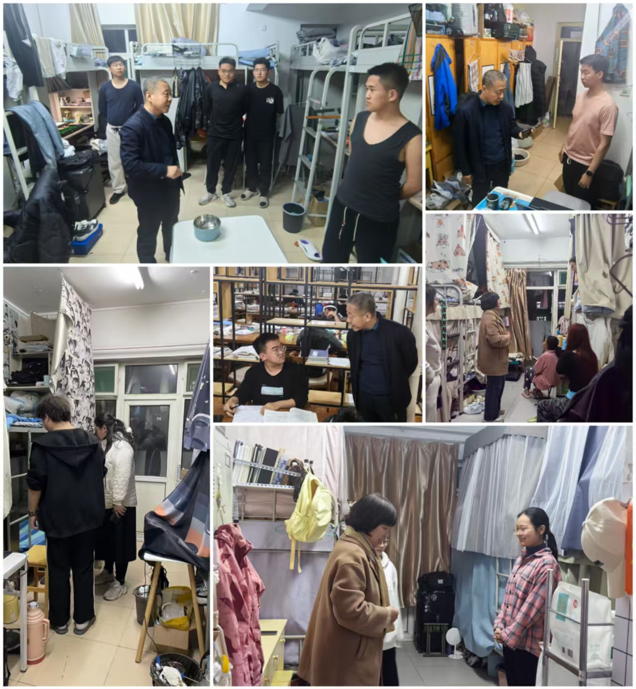 走访过程中,老师们逐一检查宿舍用电安全与卫生状况,排查违规电器使用隐患,对卫生良好的宿舍给予肯定,对需改进的宿舍提出整改建议,强调要共同维护安全、整洁的居住环境。针对毕业班员工,赵书记详细询问了考研复试进展及求职情况,鼓励员工积极准备复试、把握就业机会,同时提醒认真完成毕业设计,为老员工活画上圆满句号。在低年级宿舍,杜书记与员工亲切交流,了解课程学习进度与困难,叮嘱员工夯实专业基础,合理规划时间,保持积极进取的学习状态。