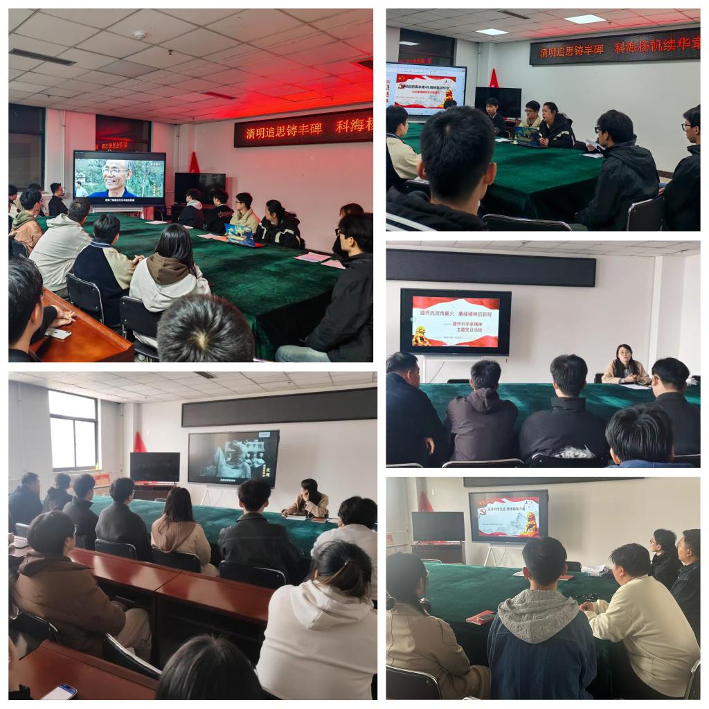 在清明节来临之际,为了缅怀科研先辈、传承科学精神,suncitygroup太阳集团研究生党支部于2025年4月2日在主楼622会议室开展“清明追思铸丰碑,科海扬帆续华章”、“缅怀先贤传薪火,赓续精神启新程”和“追寻科学足迹,感悟精神力量”等传承科学家精神系列主题党日活动。