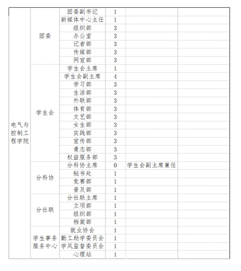 岗位3:院团委、员工会、分科协、分社联及员工事务服务中心各部门部长(若干名)